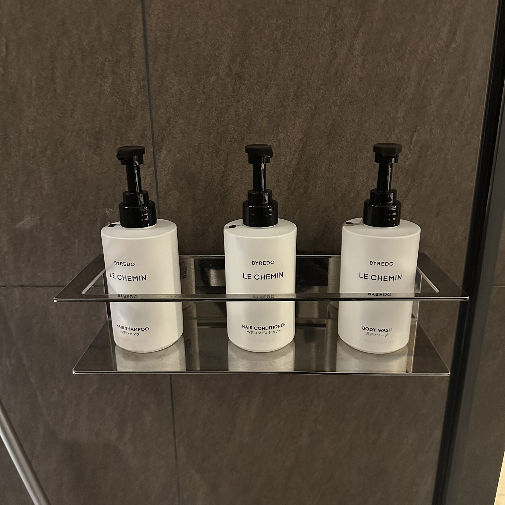バスルームのアメニティはバイレード ル シュマンのもの。初めて見るブランドでしたが、調べたところかなりお高め・・ありがたく気持ち多めに使わせていただきました。洗面台には同ブランドのボディクリームもあります。